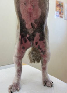 しかし、5歳の夏以降は、アトピー性皮膚炎に対するアポキルを内服したり、薬用シャンプーを用いても1年中体が赤く、べたつきが続いている状態でした。
