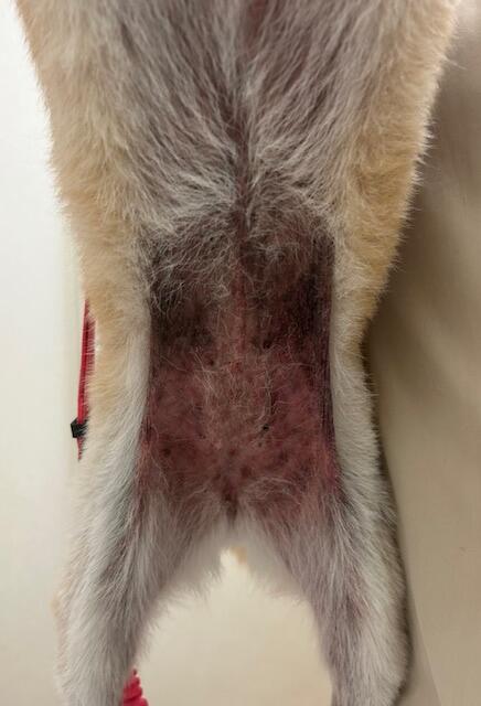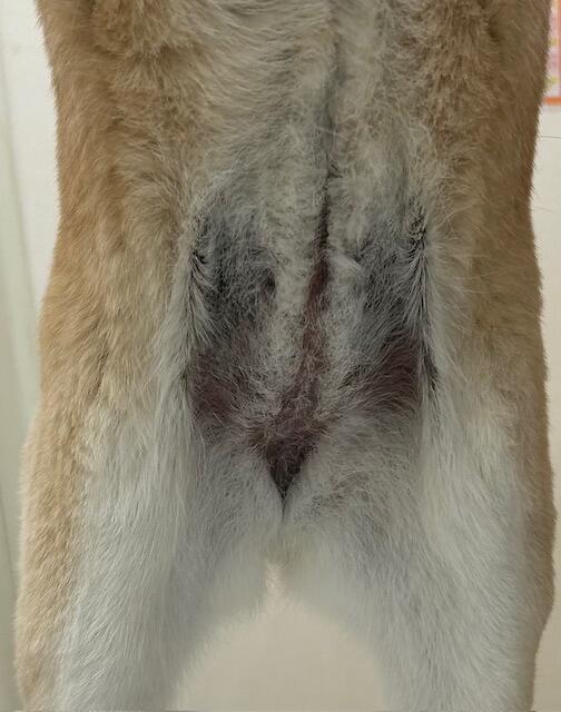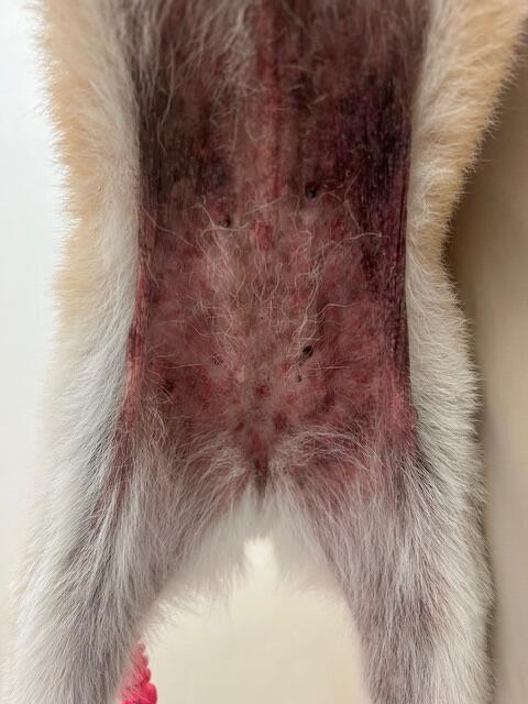 そのため、足先やお腹の皮膚炎は膿皮症(細菌性皮膚炎)と診断しました。