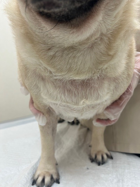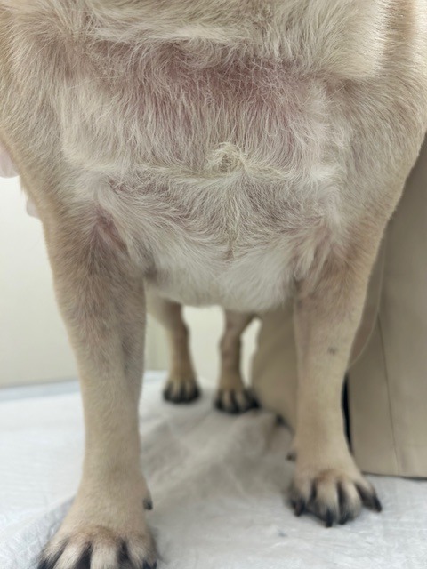 同じように繰り返す膿皮症(細菌性皮膚炎)や、外耳炎で悩まれている飼い主様は、一度当院までお問合せください。