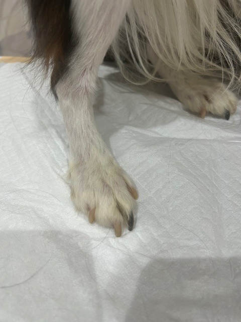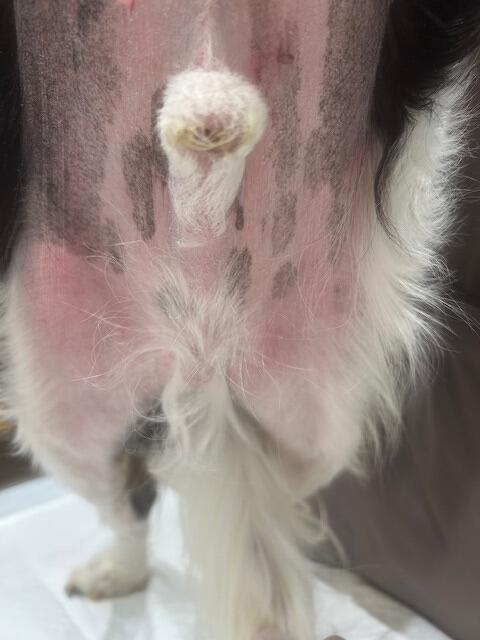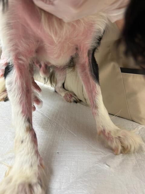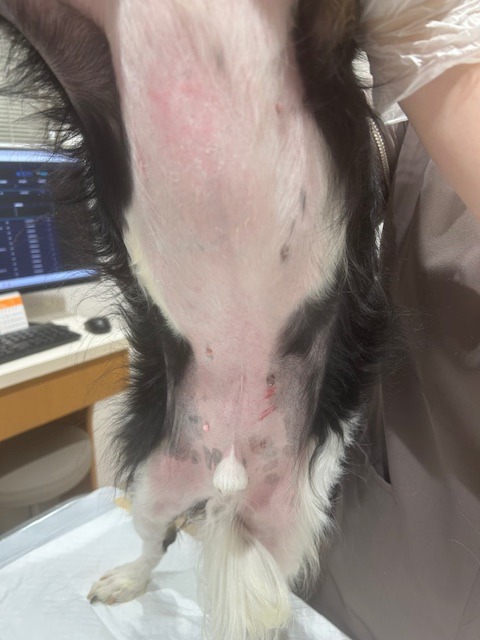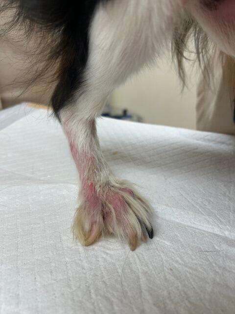 そのため、足先やお腹の皮膚炎は膿皮症(細菌性皮膚炎)と診断しました。