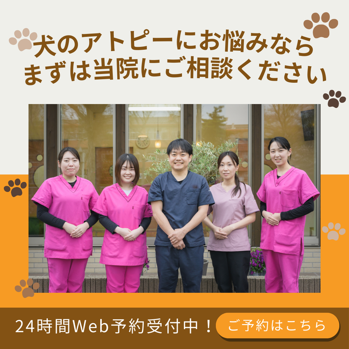 当院では、犬のアトピー性皮膚炎の治療を行っておりますので、お悩みの場合は一度ご相談ください。