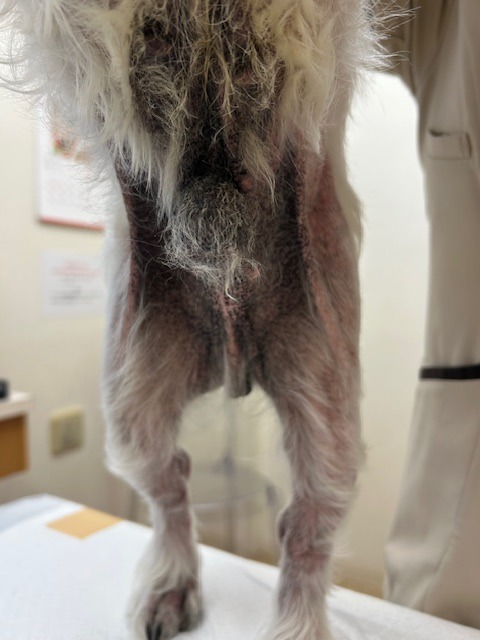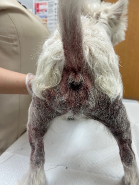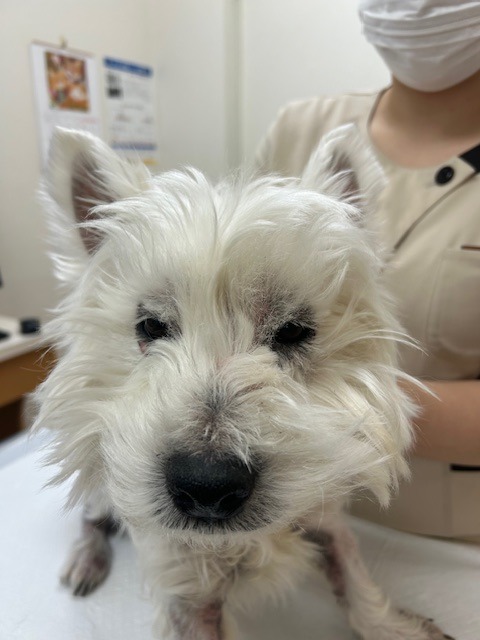 アトピー性皮膚炎が多いウェスティで、アポキルが4歳の頃は効いたから『アトピー性皮膚炎』と診断されていました。しかし、ここ数年はアポキルでは痒みがコントロール出来ていないため、当院では一から除外診断をし直しました。