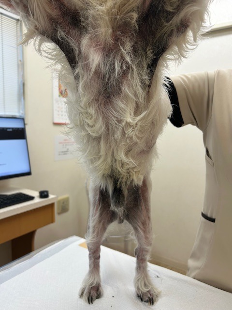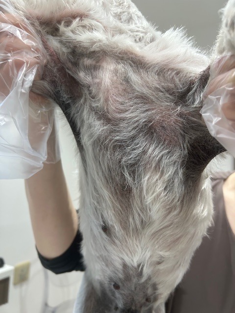 このワンちゃんは、マラセブシャンプーで洗っても体を全体的に痒がっている状態でした。