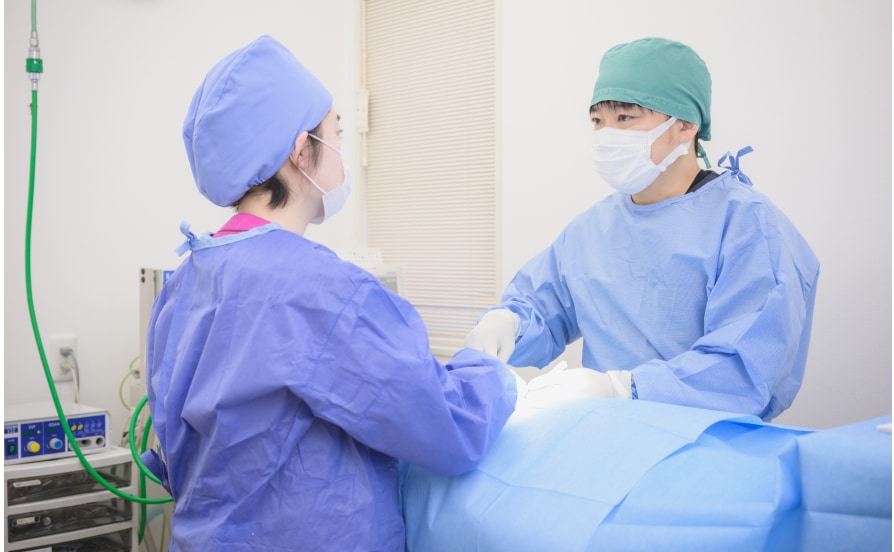 また、当院を受診されたことのない方は、事前にご受診いただき診察をさせていただきます。手術当日は、12時間前時から絶食していただき、午前9時までにご来院ください。